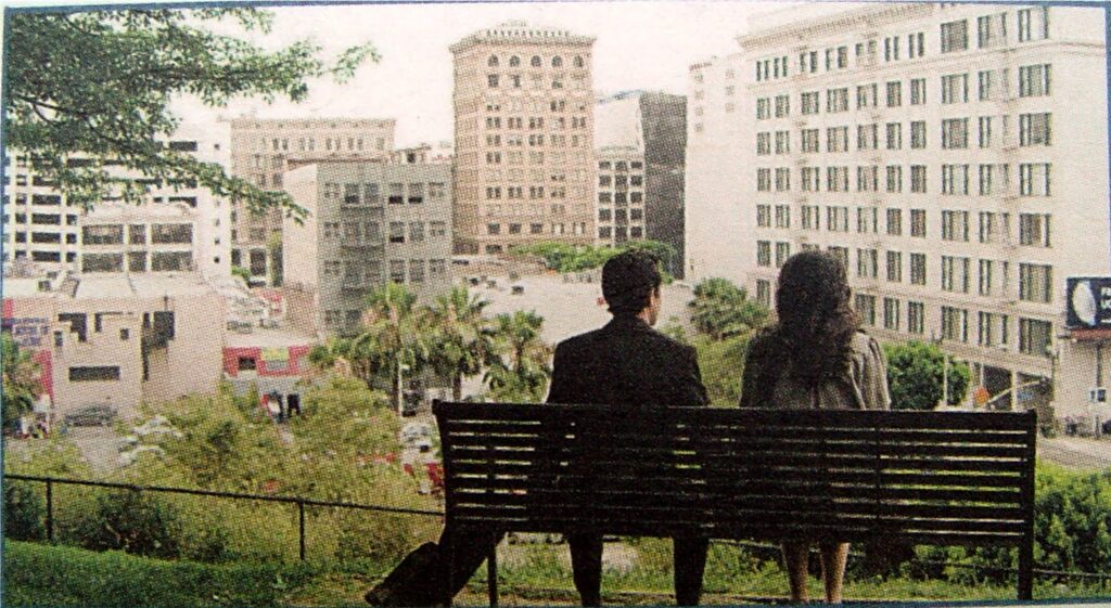 Temporary Bunker Hill park is site of romance and regret, with a view of colorful facades. Hollywood, June 2009–Angels Knoll, a temporary park in downtown Los Angeles designed by Suisman Urban Design with Pat Smith, served as the dramatic centerpiece of the 2009 indy hit, “500 Days of Summer”. The two lovers, played by Joseph…